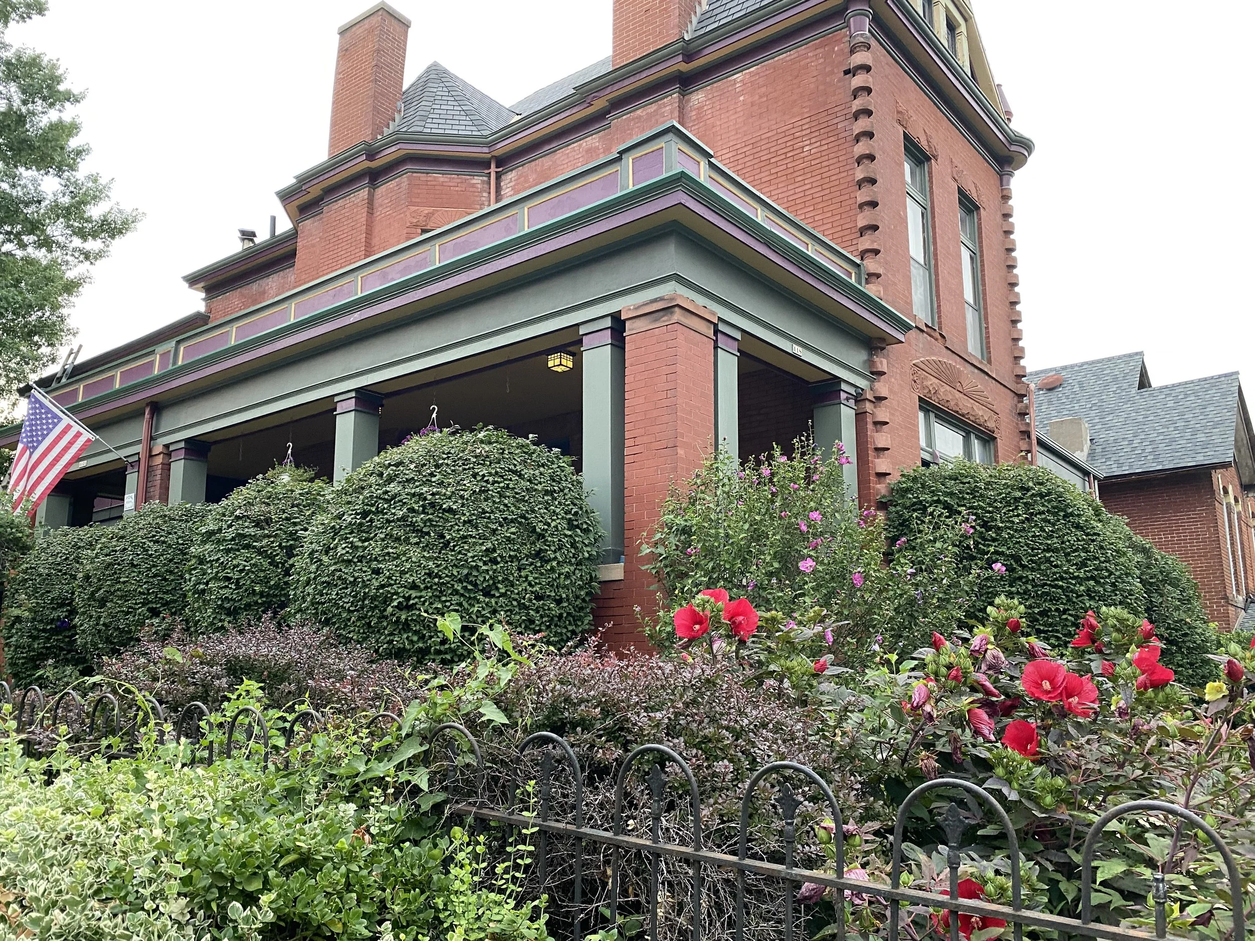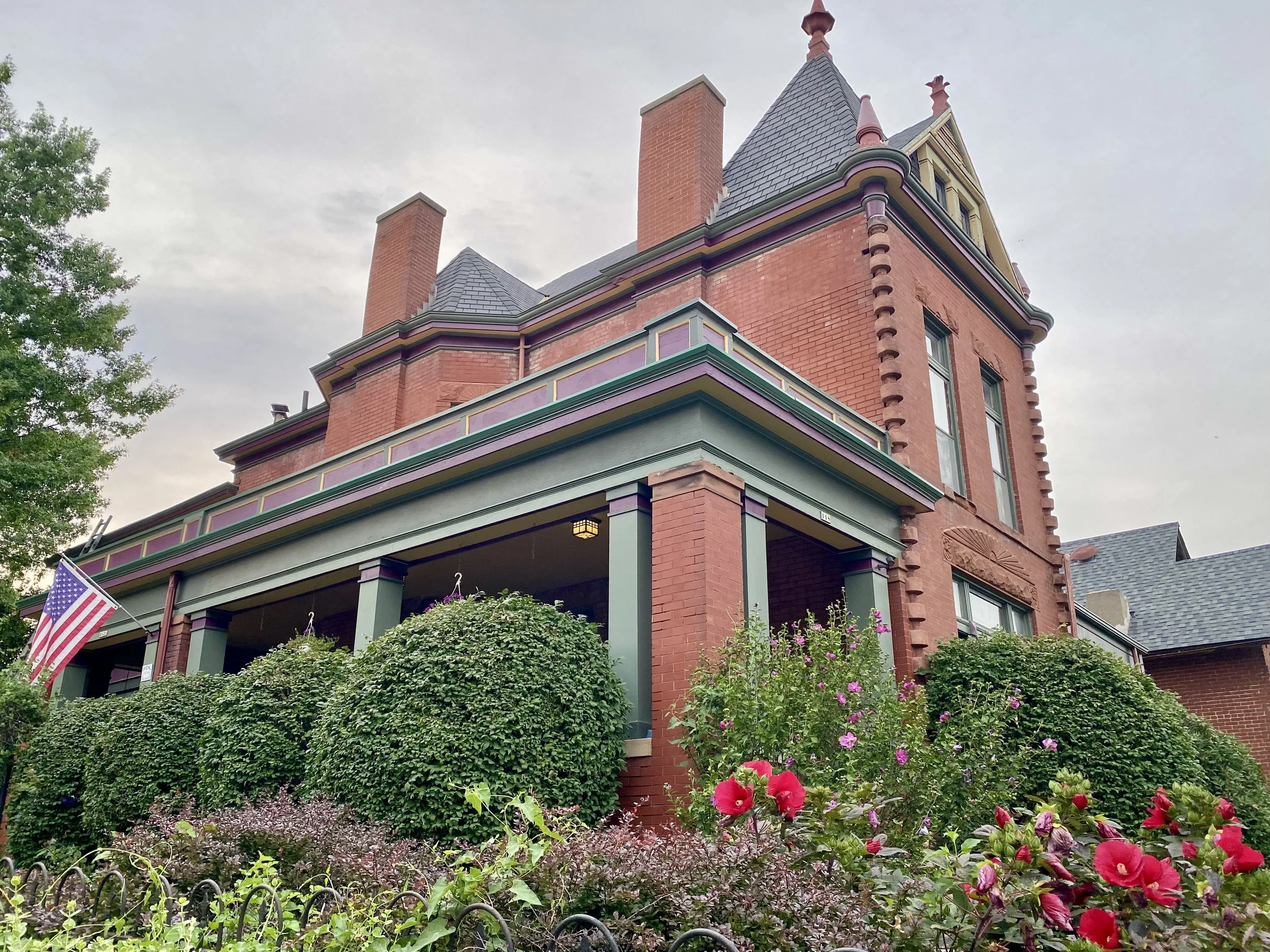 This Queen Anne style home with double carriage house was built in 1889 for pioneer plumber and plumbing supplier, James Horrigan. The house was occupied by the military during WW2 with officer sleeping in the basement and enlisted men in the attic.