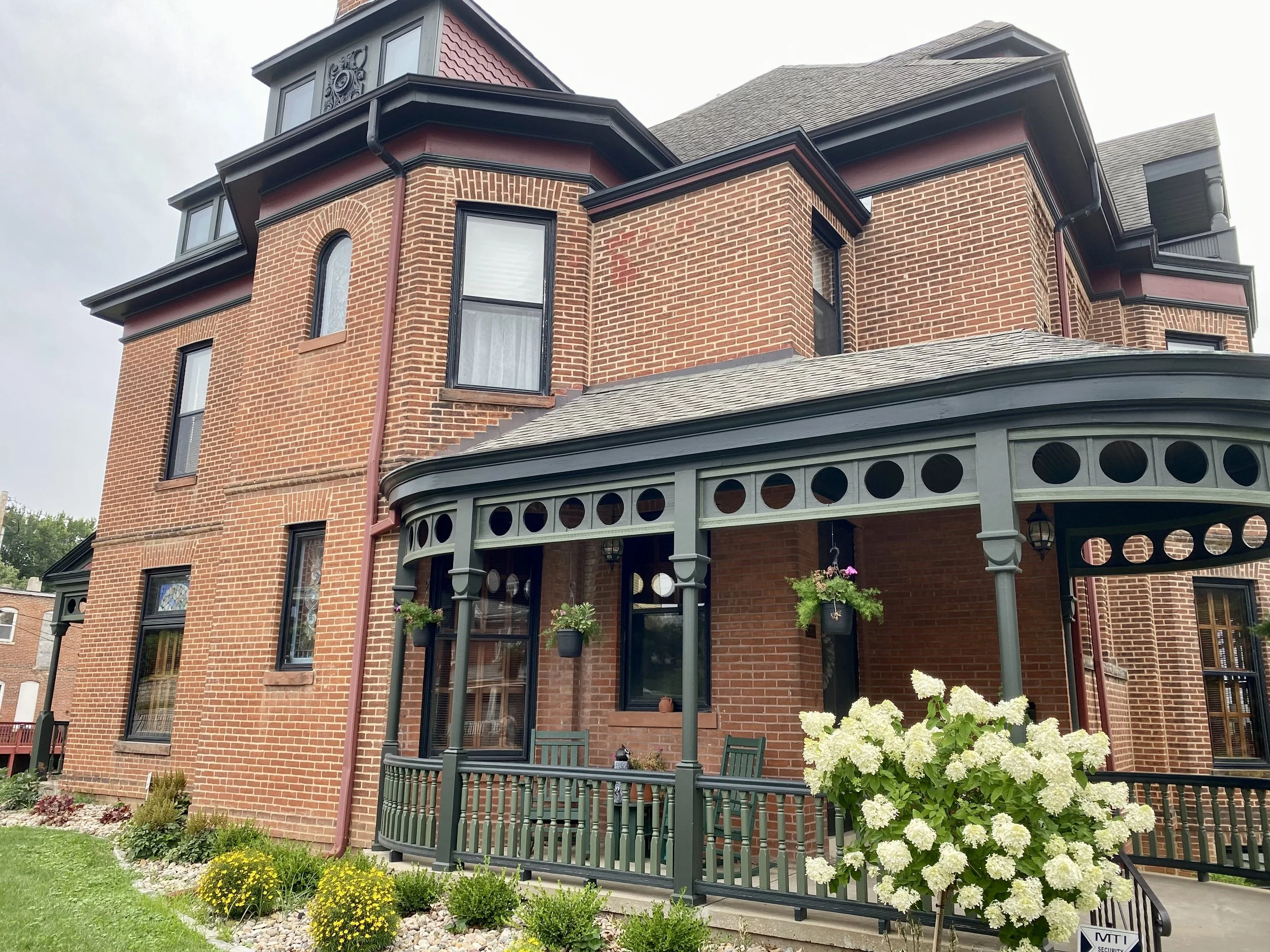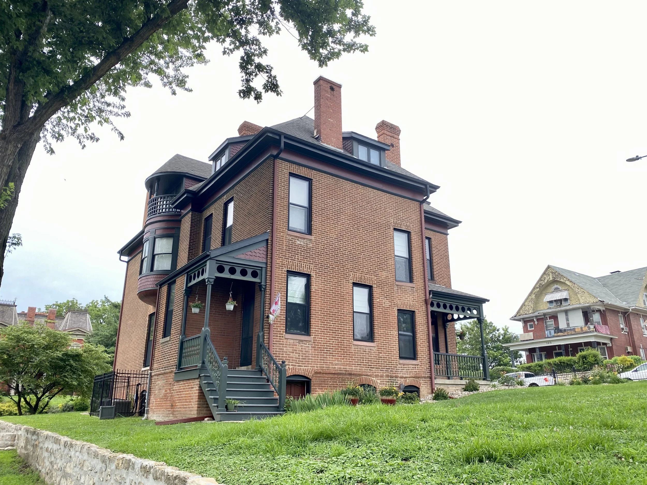 This Queen Anne style house was designed by Eckel and Mann with 3,444 sq feet of space, 10 rooms, 5 bedrooms, 2 bathrooms, 9 stained glass windows, and 7 fireplaces.