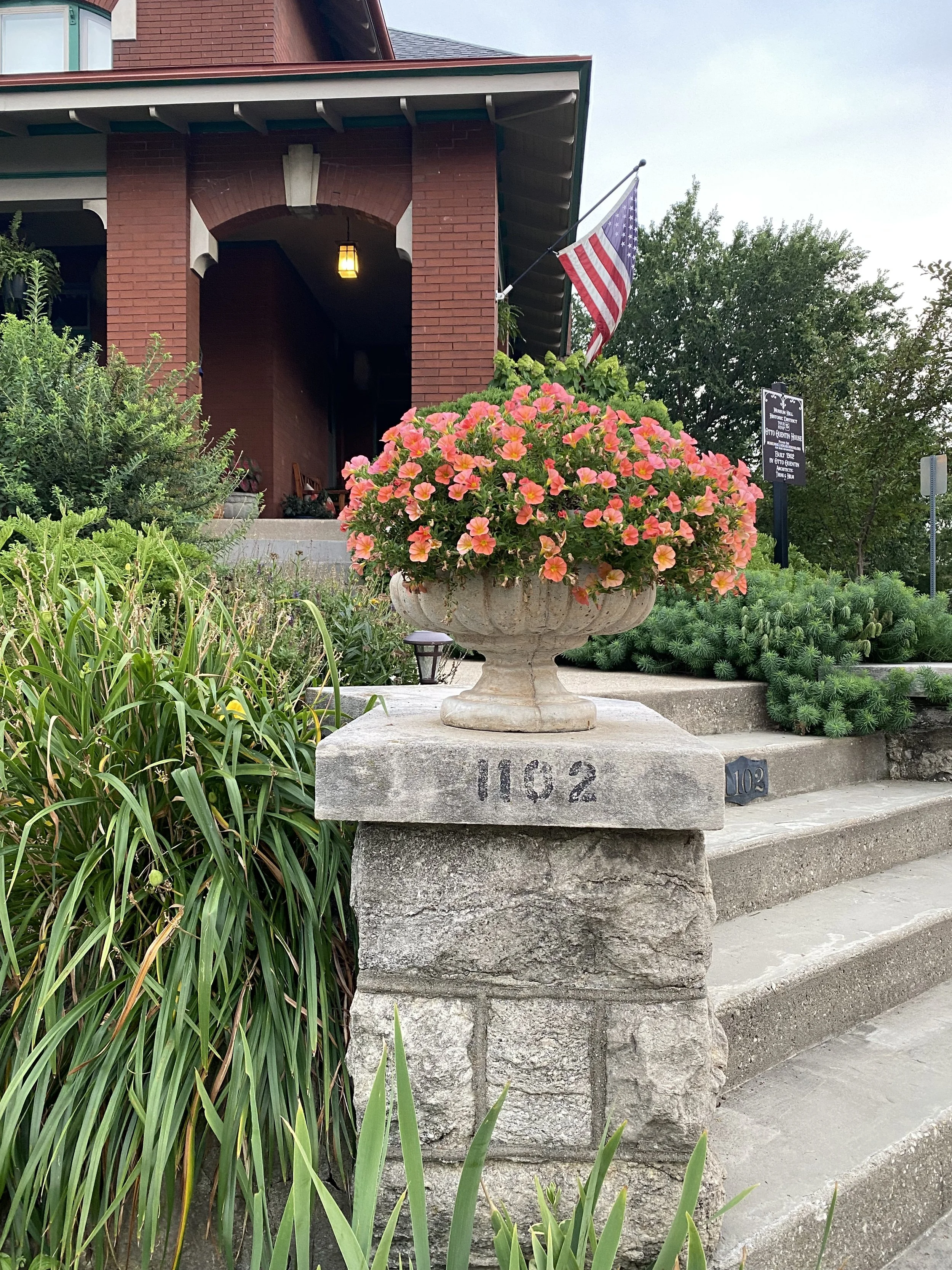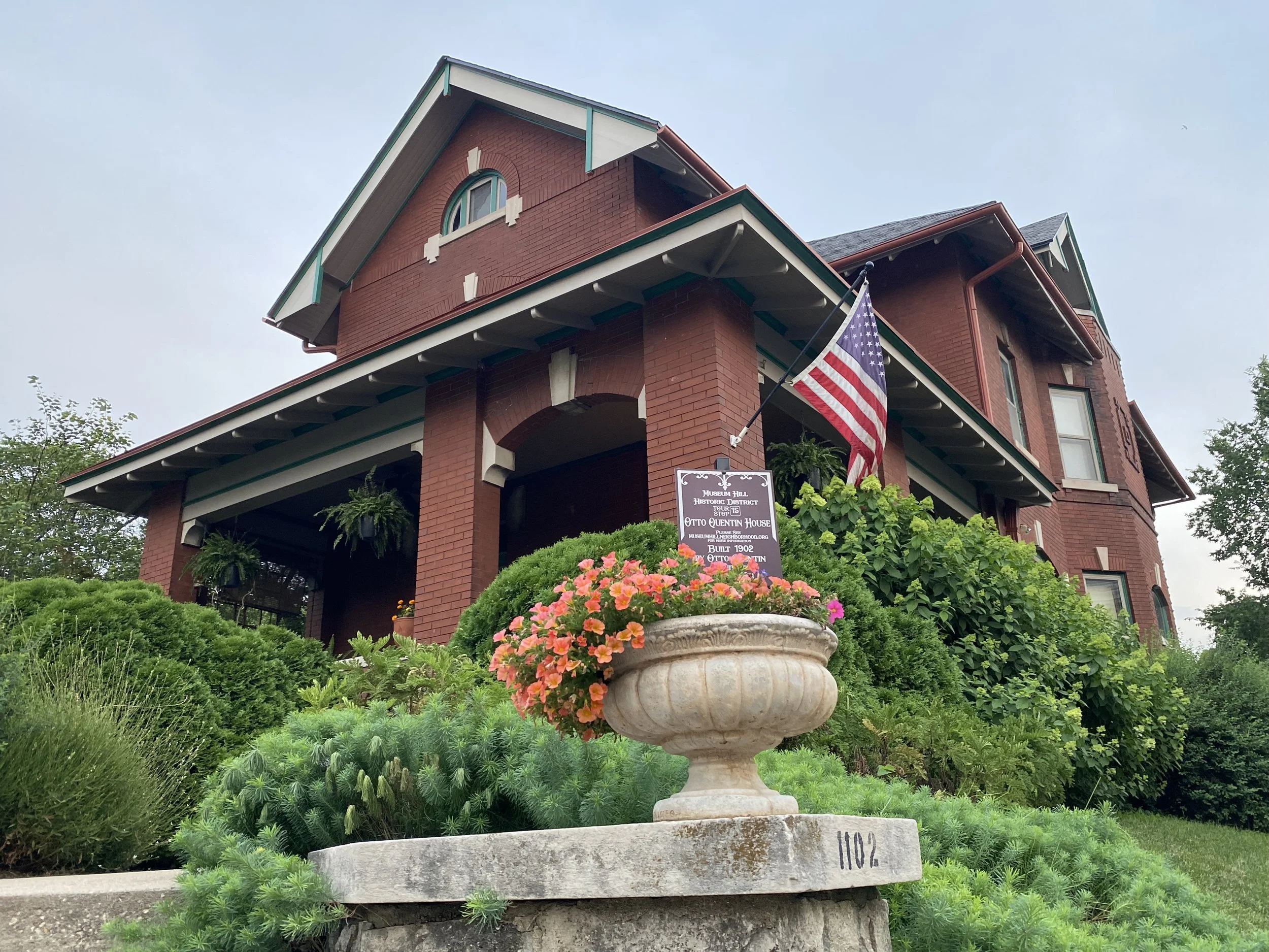 Otto Quentin was a prominent pharmacy owner in Saint Joseph. He and his wife, Alice Horrigan, built this Queen Anne/Craftsman transitional house in 1902. The house has both Victorian and Prairie style architecture. Extensive quarter and rift sawn oak woodwork is throughout the first floor. The house retains it original butler’s pantry, servants stairs, and speaking tube that runs from the front door to the upstairs nursery. Some original light fixtures remain as do the one-of-a-kind leaded glass windows in the entry, dining room and living room. Sadly, Otto died in 1931 due to a fire in the basement of the house.